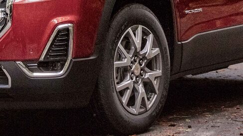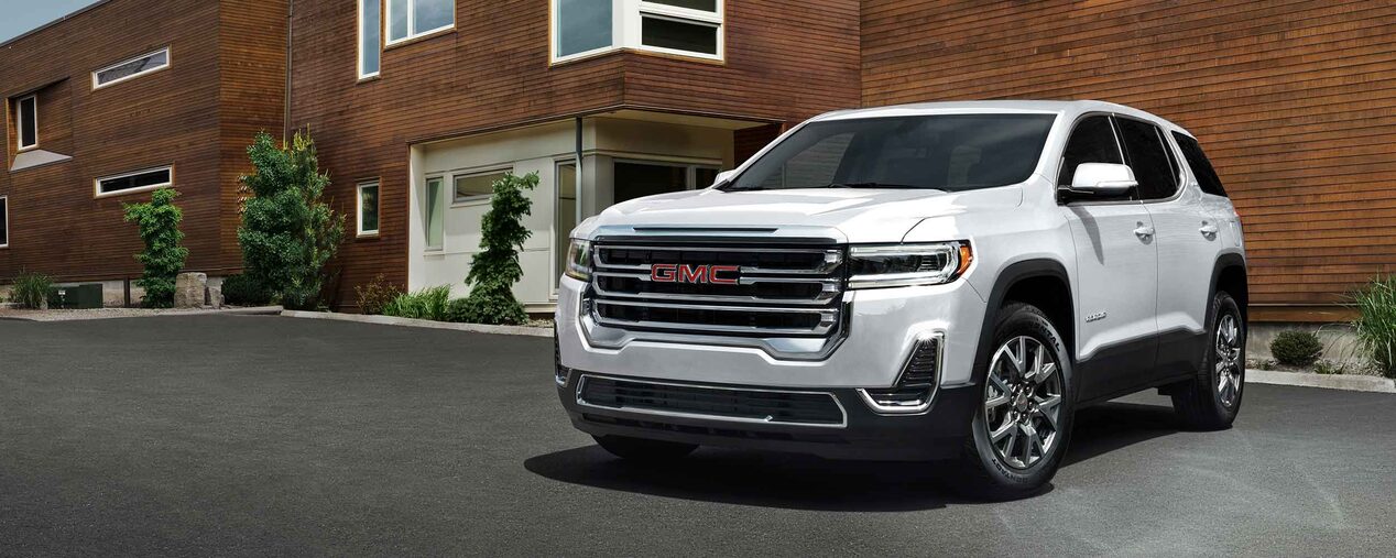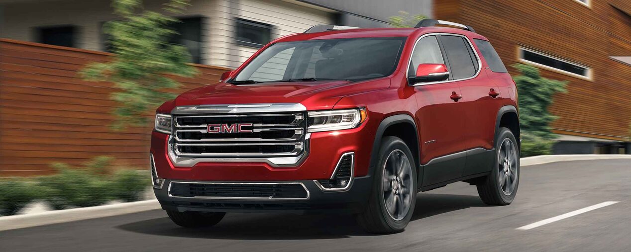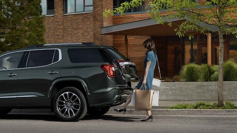 The 2022 Acadia trim levels are the SLE, SLT, AT4, and Denali. The SLE is the essential SUV with its muscular curves and substantial proportions that are accentuated by 18-inch aluminum wheels and signature C-shaped lights. These exquisite fixtures also show up on the SLT, along with roof-mounted side rails and a hands-free programmable liftgate. On the AT4, you'll find a trim-exclusive grille, black chrome accents, and 17-inch gloss-black wheels. As the top trim, the Denali gets its own signature grille and 20-inch ultra-bright machined aluminum wheels. No matter what trim you choose, your Acadia will look amazing in colors like Satin Steel, Midnight Blue, and Cayenne Red.