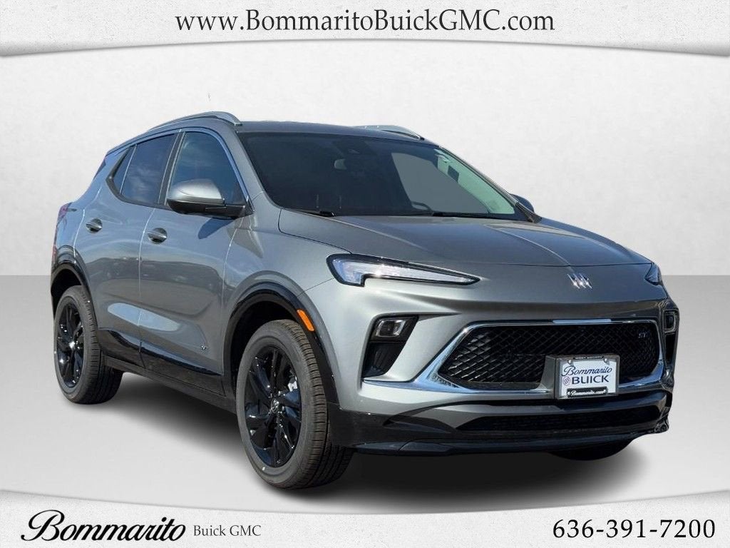 Gray Metallic 2026 Buick Encore GX Sport Touring ECOTEC 1.3L Turbo CVT FWD 4D Sport Utility 2-Way Power Driver Lumbar Control, 4-Way Manual Passenger Seat Adjuster, 4-Wheel Disc Brakes, 5.45 Final Drive Axle Ratio, 6 Speakers, 6-Way Manual Driver Seat Adjuster, 8-Way Power Driver Seat Adjuster, ABS brakes, Adaptive Cruise Control, Advanced Technology Package, Air Conditioning, Alloy wheels, AM/FM radio: SiriusXM, Auto High-beam Headlights, Automatic temperature control, Brake assist, Bumpers: body-color, Comfort Package, Compass, Delay-off headlights, Driver door bin, Driver vanity mirror, Dual front impact airbags, Dual front side impact airbags, Electronic Stability Control, Emergency communication system: OnStar and Buick connected services capable, Enhanced Performance 6-Speaker System, Flat-Folding Front Passenger Seatback, Front anti-roll bar, Front Bucket Seats, Front Center Armrest, Front License Plate Bracket, Front reading lights, Front wheel independent suspension, Fully automatic headlights, HD Surround Vision, Heated door mirrors, Heated Driver and Front Passenger Seats, Heated Steering Wheel, Illuminated entry, Knee airbag, Leatherette Seat Trim, Low tire pressure warning, Mechanical Jack with Tools, Occupant sensing airbag, Outside temperature display, Overhead airbag, Overhead console, Panic alarm, Passenger door bin, Passenger vanity mirror, Power door mirrors, Power steering, Power windows, Preferred Equipment Group 1SD, Radio data system, Radio: AM/FM Audio System, Rear Center Armrest, Rear Park Assist, Rear reading lights, Rear side impact airbag, Rear window defroster, Rear window wiper, Remote keyless entry, Ride and Handling Suspension, Security system, SiriusXM Trial Subscription, Speed control, Speed-sensing steering, Split folding rear seat, Spoiler, Sport steering wheel, Steering wheel mounted audio controls, Tachometer, Telescoping steering wheel, Tilt steering wheel, Traction control, Trip computer, Variably intermittent wipers, Wheels: 18 Gloss Black Aluminum, Wireless Apple CarPlay/Wireless Android Auto, Wireless Charging.