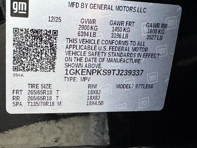 Ebony 2026 GMC Acadia AT4 2.5L DOHC 8-Speed Automatic AWD 4D Sport Utility AWD, Forest Storm W/Mahogany A, 12 Speakers, 3.49 Final Drive Axle Ratio, 3rd row seats: split-bench, 4-Wheel Disc Brakes, 6-Way Power Front Passenger Seat Adjuster, 7-Passenger Seating (2-2-3 Seating Configuration), 8-Way Power Driver Seat Adjuster, 8 Diagonal Head-Up Display, ABS brakes, Air Conditioning, Alloy wheels, AM/FM radio: SiriusXM with 360L, Apple CarPlay/Android Auto, Auto High-beam Headlights, Auto-dimming Rear-View mirror, Automatic temperature control, Bodyside moldings, Bose Premium 12-Speaker System w/Sub-Woofer, Brake assist, Bumpers: body-color, Cloth/CoreTec Seat Trim, Compass, Delay-off headlights, Driver 2-Way Power Lumbar Seat Adjuster, Driver door bin, Driver vanity mirror, Dual front impact airbags, Dual front side impact airbags, Electronic Stability Control, Emergency communication system: OnStar Services capable, Exterior Parking Camera Rear, Four wheel independent suspension, Front anti-roll bar, Front Bucket Seats, Front Center Armrest, Front dual zone A/C, Front fog lights, Front Passenger Power Lumbar Seat Adjuster, Front reading lights, Fully automatic headlights, Garage door transmitter, Heated & Ventilated Driver & Front Passenger Seats, Heated door mirrors, Heated Driver & Front Passenger Seats, Heated front seats, Heated Rear Outboard Seating Positions, Heated steering wheel, Heated Wiper Park, Illuminated entry, Laminated Acoustic Glass, Leather steering wheel, Low tire pressure warning, Luxury Package, Navigation System, Occupant sensing airbag, Outside temperature display, Overhead airbag, Overhead console, Panic alarm, Panoramic Power Sunroof w/Sunshade, Passenger door bin, Passenger vanity mirror, Power door mirrors, Power driver seat, Power Liftgate, Power passenger seat, Power steering, Power windows, Radio data system, Radio: 15 Premium GMC Infotainment System, Rear air conditioning, Rear anti-roll bar, Rear reading lights, Rear side impact airbag, Rear window defroster, Rear window wiper, Remote keyless entry, Security system, SiriusXM w/360L, Speed control, Speed-sensing steering, Split folding rear seat, Spoiler, Sport steering wheel, Steering wheel mounted audio controls, Tachometer, Telescoping steering wheel, Tilt steering wheel, Traction control, Trip computer, Turn signal indicator mirrors, Variably intermittent wipers, Voltmeter, Wheels: 18 x 8 Dark Machined Aluminum, AWD, Forest Storm W/Mahogany A.
