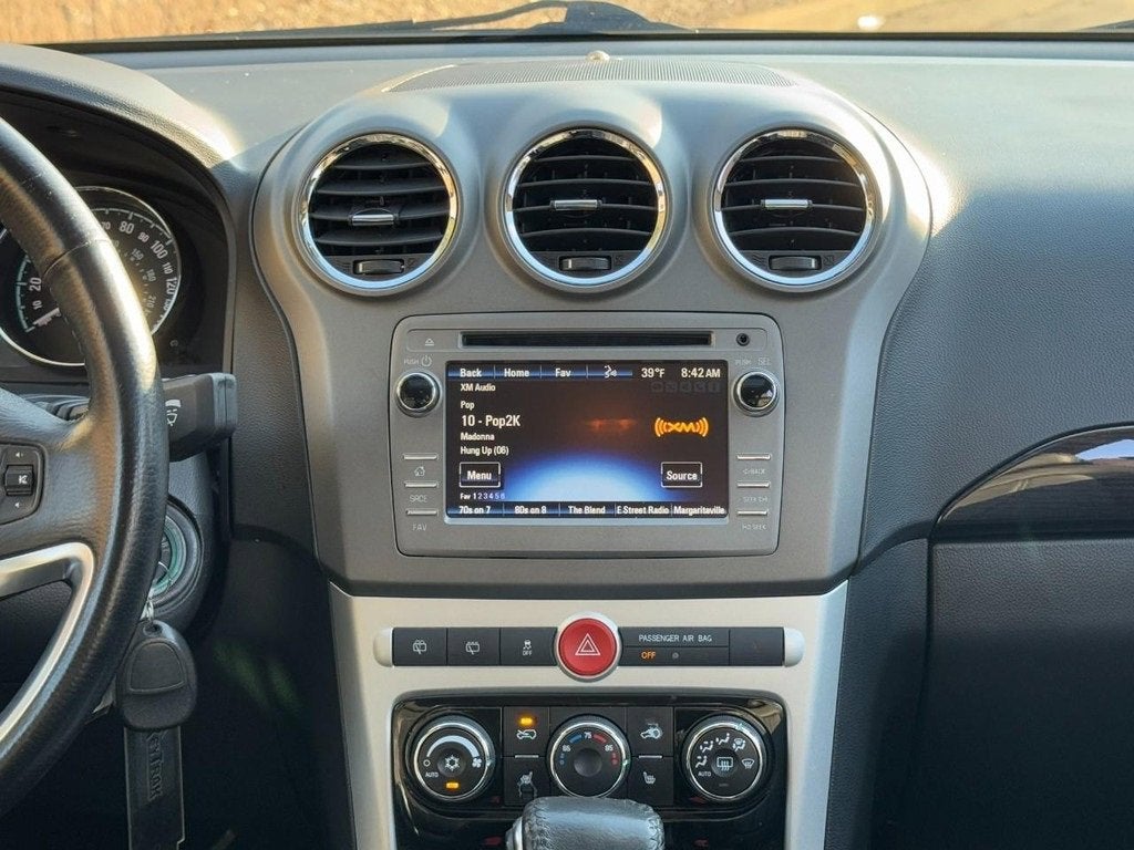 Clean CARFAX. 2014 Chevrolet Captiva Sport LT 2.4L 4-Cylinder SIDI DOHC VVT 6-Speed Automatic FWD 4D Sport Utility Arctic Ice 18 x 7 Chrome-Clad Aluminum (4) Wheels, 3.23 Axle Ratio, 4-Wheel Disc Brakes, 6 Speakers, 6-Speaker Audio System Feature, ABS brakes, Air Conditioning, Alloy wheels, AM/FM radio: SiriusXM, AM/FM Stereo w/CD Player & MP3 Playback, Anti-whiplash front head restraints, Auto-dimming door mirrors, Auto-dimming Rear-View mirror, Automatic temperature control, Bluetooth® For Phone, Brake assist, Bumpers: body-color, CD player, Cloth Seat Trim, Compass, Convenience Package, Delay-off headlights, Deluxe Front Bucket Seats, Driver door bin, Driver vanity mirror, Dual front impact airbags, Dual front side impact airbags, Electronic Stability Control, Emergency communication system: OnStar Directions & Connections, Four wheel independent suspension, Front anti-roll bar, Front Bucket Seats, Front Center Armrest w/Storage, Front fog lights, Front License Plate Bracket, Front reading lights, Fully automatic headlights, Heated door mirrors, Heated Driver & Front Passenger Seats, Illuminated entry, Leather-Appointed Seat Trim, Leather-Wrapped Shift Knob, Low tire pressure warning, Occupant sensing airbag, Outside temperature display, Overhead airbag, Overhead console, Panic alarm, Passenger door bin, Passenger vanity mirror, Power door mirrors, Power driver seat, Power steering, Power Tilt-Sliding Sunroof, Power windows, Preferred Equipment Group 1LT, Radio data system, Radio: Chevrolet MyLink Audio System, Rainsense Wipers, Rear anti-roll bar, Rear Coat Hooks, Rear reading lights, Rear seat center armrest, Rear window defroster, Rear window wiper, Remote keyless entry, Remote Vehicle Starter System, Roof rack: rails only, Security system, SIRIUSXM Satellite Radio, Speed control, Split folding rear seat, Spoiler, Steering wheel mounted audio controls, Tachometer, Telescoping steering wheel, Tilt steering wheel, Traction control, Trip computer, Universal Home Remote, Variably intermittent wipers.