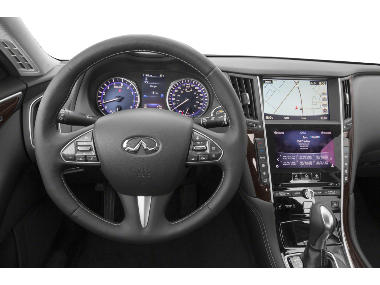 Recent Arrival! Clean CARFAX. 2015 INFINITI Q50 Premium 3.7L V6 DOHC 24V 7-Speed Automatic with Manual Shift AWD 4D Sedan Graphite Shadow 14 Speakers, 17" Aluminum Alloy Wheels, 4-Wheel Disc Brakes, 60/40 Split-Folding Rear Seats, ABS brakes, Activation Disclaimer, Air Conditioning, All Weather Package w/Spare Tire Package, All-Season Mats, Alloy wheels, AM/FM radio: SiriusXM, Anti-whiplash front head restraints, Around View Monitor w/Moving Object Detection, Auto-Dimming Outside Mirrors w/Reverse Tilt-Down, Auto-dimming Rear-View mirror, Automatic temperature control, BOSE Centerpoint Simulated Surround, Brake assist, Bumpers: body-color, Cargo Net, Cargo Package w/Spare Tire Package, CD player, Compass, Delay-off headlights, Deluxe Touring Package, Direct Adaptive Steering, Driver door bin, Driver Seat 2-Way Power Lumbar, Driver vanity mirror, Dual front impact airbags, Dual front side impact airbags, Dual Occupant Memory System For Driver's Seat, Electronic Stability Control, First Aid Kit, Floor Mats, Four wheel independent suspension, Front anti-roll bar, Front Bucket Seats, Front Center Armrest, Front dual zone A/C, Front fog lights, Front reading lights, Fully automatic headlights, Garage door transmitter: HomeLink, Heated door mirrors, Heated Front Seats, Heated front seats, Heated steering wheel, Illuminated entry, INFINITI InTouch Navigation System, INFINITI Studio on Wheels by Bose, Jack Kit, Leather Seating Package, Leather Shift Knob, Leather steering wheel, Leather-Appointed Seats, Literature Kit, Low tire pressure warning, Maple Wood Trim, Navigation Package, Occupant sensing airbag, Outside temperature display, Overhead airbag, Overhead console, Panic alarm, Passenger door bin, Passenger vanity mirror, Power door mirrors, Power driver seat, Power moonroof, Power passenger seat, Power steering, Power Tilt & Telescopic Steering Column, Power windows, Premium Leatherette Seating Surfaces, Radio data system, Radio: AM/FM/CD w/MP3 Playback Capability, Rain-Sensing Front Windshield Wipers, Rear anti-roll bar, Rear reading lights, Rear seat center armrest, Rear window defroster, Remote keyless entry, Security system, Spare Tire Package, Speed control, Speed-sensing steering, Speed-Sensitive Wipers, Steering wheel mounted audio controls, Tachometer, Telescoping steering wheel, Tilt steering wheel, Traction control, Trip computer, Trunk Mat, Trunk Protector, Turn signal indicator mirrors, Variably intermittent wipers.
