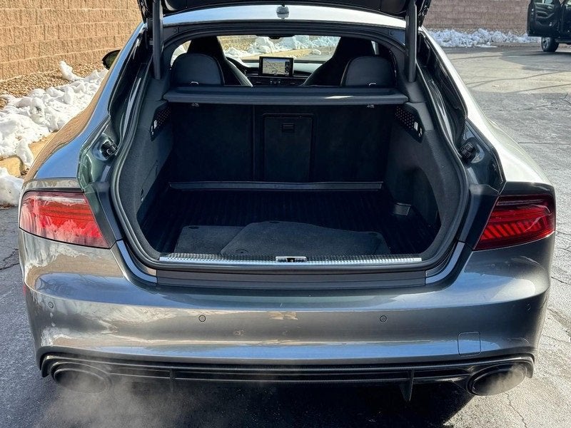 **2017 Audi RS 7 4.0T Prestige quattro 4.0L V8 Turbocharged DOHC 32V ULEV II 560hp 8-Speed Automatic with Tiptronic quattro 4D Hatchback Daytona Gray Pearl** **Carbon optic package** **high gloss Black exterior package** **Front Spolier & rear diffuser in carbon** **Exterior mirror housing in high-gloss black** **Driver Assistance package** **Audi adaptive cruise control** **Audi pre sense plus** **Audi active lane assist** **Corner view camera system** **High-beam assistant** **Sport Exhaust system** **21 5-spoe Blade-design wheels** **Cold weather package** **Heated rear seats** Heated steering wheel** **Red brake calipers** **Carbon optic lower air intakes w/quattro** **power Sunroof** **Full LED headlights** **Auto dimming, power folding, heated exterior mirrors** **Front RS Sport seats, heated, 12-way power with driver memory** **3-spoke flat bottom leather wrapped steering wheel w/shift paddles** **Valcona leather seats** **Four-zone automatic climate control** **BOSE Surround sound** **Head-up display** **Audi Navigation plus** **Audi side assist** **Garage door opener (HomeLink)** **Preparation for mobile phone (Bluetooth®) with audio streaming** **Parking system plus with rearview camera** **Power soft-closing doors** **Driver advanced single stage adaptive frontal airbag and front passenger airbag supplemental restraint system 2 stage adaptive frontal airbag supplemental airbag system** **Driver and front passenger seat mounted side airbag supplemental restraints** **Side impact protection, front and rear body crumple zones** **Anti-theft vehicle alarm system and ignition immobilizer** **Lower anchors ad tethers for Children (LATCH) in rear** **ORIGINAL WINDOW STICKER=$122,185**