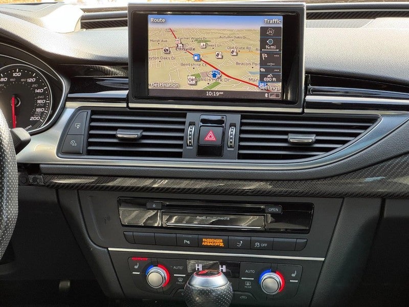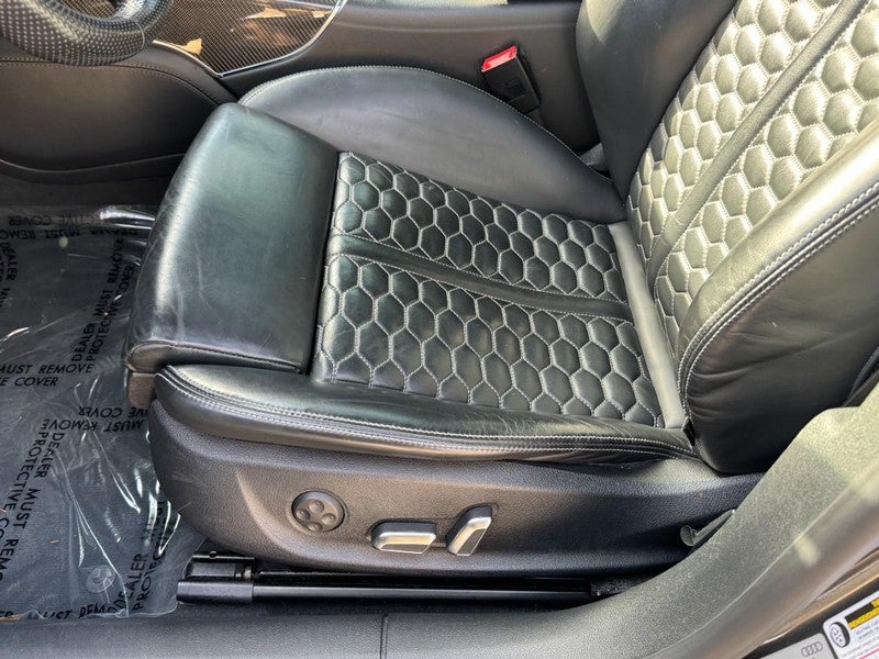 2017 Audi RS 7 4.0T Prestige quattro 4.0L V8 Turbocharged DOHC 32V ULEV II 560hp 8-Speed Automatic with Tiptronic quattro 4D Hatchback Daytona Gray Pearl 14 Speakers, 4-Wheel Disc Brakes, ABS brakes, Adaptive Cruise Control w/Stop & Go, Adaptive suspension, Air Conditioning, Alloy wheels, AM/FM radio: SiriusXM, Anti-whiplash front head restraints, Audi Active Lane Assist, Audi Pre Sense Plus, Audi Smartphone Interface, Auto tilt-away steering wheel, Auto-dimming door mirrors, Auto-dimming Rear-View mirror, Auto-leveling suspension, Automatic temperature control, BOSE Surround Sound System, Brake assist, Bumpers: body-color, Carbon Fiber Front Spoiler, Carbon Fiber Rear Diffuser, Carbon quattro Script in Singleframe Grille, Carbon-Optic Package, CD player, Cold Weather Package, Compass, Delay-off headlights, Deletes Front License Plate Holder, Door auto-latch, Driver Assistance Package, Driver door bin, Driver vanity mirror, Dual front impact airbags, Dual front side impact airbags, DVD-Audio, Electronic Stability Control, Exterior Mirror Housings in High-Gloss Black, Exterior Parking Camera Rear, Four wheel independent suspension, Front & Rear Corner View Camera System, Front & Rear Red Brake Calipers, Front anti-roll bar, Front Bucket Seats, Front Center Armrest w/Storage, Front dual zone A/C, Front fog lights, Front reading lights, Garage door transmitter: HomeLink, Heads-Up Display, Heated door mirrors, Heated front seats, Heated Rear Seats, Heated RS Sport Bucket Seats, Heated Steering Wheel, High-Beam Assistant, Illuminated entry, Knee airbag, Leather Shift Knob, Leather steering wheel, Low tire pressure warning, Memory seat, Navigation System, Occupant sensing airbag, Outside temperature display, Overhead airbag, Overhead console, Panic alarm, Passenger door bin, Passenger vanity mirror, Power door mirrors, Power driver seat, Power Liftgate, Power moonroof, Power passenger seat, Power steering, Power windows, Radio data system, Radio: Audi MMI Navigation Plus w/AM/FM, Rain sensing wipers, Rear air conditioning, Rear anti-roll bar, Rear dual zone A/C, Rear fog lights, Rear reading lights, Rear seat center armrest, Rear window defroster, Remote keyless entry, Security system, Speed control, Speed-sensing steering, Speed-Sensitive Wipers, Spoiler, Sport steering wheel, Sports Exhaust w/Black Finishers, Steering wheel memory, Steering wheel mounted audio controls, Tachometer, Telescoping steering wheel, Tilt steering wheel, Traction control, Trip computer, Turn signal indicator mirrors, USB Cables, Valcona Leather Seating Surfaces, Variably intermittent wipers, Wheels: 9.0" x 20" Forged 7-Twin Spoke, Wheels: 9.0" x 21" 5-Spoke Blade Design.