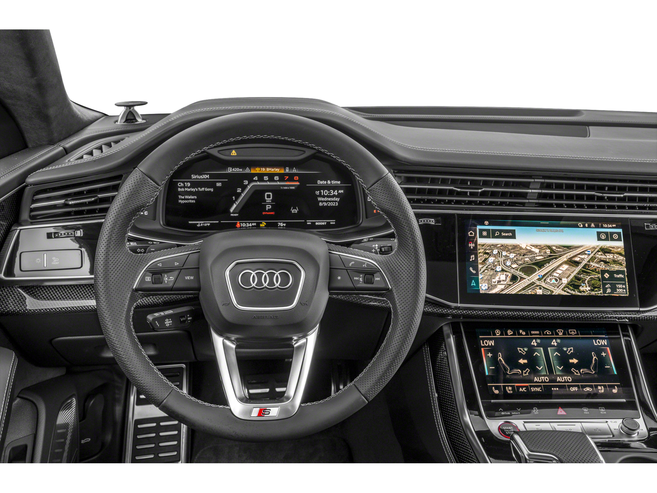 Recent Arrival! CARFAX One-Owner. 2020 Audi SQ8 4.0T Prestige quattro 4.0L V8 Turbocharged DOHC 32V LEV3-ULEV125 500hp 8-Speed Automatic with Tiptronic quattro 4D Sport Utility Blue Metallic 17 Speakers, 4-Wheel Disc Brakes, ABS brakes, Adaptive suspension, Air Conditioning, Alloy wheels, Alu Touch-Sensitive Interior Buttons, AM/FM radio: SiriusXM, Audi Active Lane Departure Warning, Audi Adaptive Cruise Assist, Audi smartphone interface (Apple CarPlay/Android Auto), Auto High-beam Headlights, Auto-dimming door mirrors, Auto-dimming Rear-View mirror, Auto-leveling suspension, Automatic temperature control, Bang & Olufsen 3D Advanced Sound System, Black Mirror Housings, Black Optic Exterior Package, Black Roof Rails, Brake assist, Bumpers: body-color, Carbon Vector Inlay, Compass, Delay-off headlights, Driver Assistance Package, Driver door bin, Driver vanity mirror, Dual front impact airbags, Dual front side impact airbags, Electric Sun Blinds for Rear Side Windows, Electronic Stability Control, Emergency communication system: Audi connect CARE, PRIME & PLUS, Four wheel independent suspension, Front anti-roll bar, Front Bucket Seats, Front Center Armrest, Front dual zone A/C, Front fog lights, Front reading lights, Fully automatic headlights, Garage door transmitter: HomeLink, HD Matrix-Design LED Headlights, Head-Up Display, Heated & Ventilated S Sport Seats, Heated door mirrors, Heated front seats, Heated Rear Seats, Heated steering wheel, Illuminated entry, Intersection Assist, Leather Shift Knob, Leather steering wheel, Low tire pressure warning, Memory seat, Navigation system: MMI Navigation plus, Night Vision Assistant, Occupant sensing airbag, Outside temperature display, Overhead airbag, Overhead console, Panic alarm, Passenger door bin, Passenger vanity mirror, Power door mirrors, Power driver seat, Power Liftgate, Power moonroof: Panoramic, Power passenger seat, Power Soft-Closing Doors, Power steering, Power windows, Prestige Package, Radio data system, Radio: Bang & Olufsen 3D Premium Sound System, Rain sensing wipers, Rear air conditioning, Rear anti-roll bar, Rear dual zone A/C, Rear fog lights, Rear reading lights, Rear seat center armrest, Rear window defroster, Rear window wiper, Remote keyless entry, Roof rack: rails only, Security system, Speed control, Speed-sensing steering, Split folding rear seat, Spoiler, SQ8 Black Optic Package, Steering wheel memory, Steering wheel mounted audio controls, Tachometer, TBD Axle Ratio, Telescoping steering wheel, Tilt steering wheel, Traction control, Traffic Sign Recognition, Trip computer, Turn signal indicator mirrors, Valcona Leather Seating Surfaces, Variably intermittent wipers, Ventilated front seats, Wheels: 21" 10-V-Spoke Partly Polished S Design, Wheels: 22" Audi Sport 5-V-Spoke Star Design.