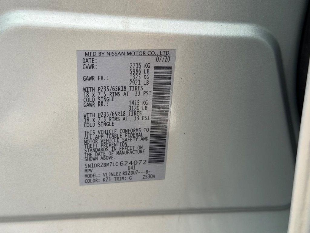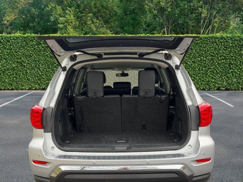 Recent Arrival! CARFAX One-Owner. 2020 Nissan Pathfinder SV V6 CVT with Xtronic 4WD 4D Sport Utility Brilliant Silver Metallic 4WD, 3rd row seats: bench, 4-Wheel Disc Brakes, 5.25 Axle Ratio, 6 Speakers, ABS brakes, Air Conditioning, Alloy wheels, AM/FM radio: SiriusXM, Auto-dimming Rear-View mirror, Automatic temperature control, Black Mold-in-Color Splash Guards, Blind Spot Warning, Brake assist, Bumpers: body-color, Carpeted Floor Mats (4-pc Set), CD player, Cloth Seating Surfaces, Compass, Cross Bars, Delay-off headlights, Driver door bin, Driver vanity mirror, Dual front impact airbags, Dual front side impact airbags, Electronic Stability Control, Four wheel independent suspension, Front anti-roll bar, Front Bucket Seats, Front Center Armrest, Front dual zone A/C, Front fog lights, Front reading lights, Fully automatic headlights, Garage door transmitter: HomeLink, Illuminated entry, Leather Shift Knob, Leather steering wheel, Low tire pressure warning, Occupant sensing airbag, Outside temperature display, Overhead airbag, Overhead console, Panic alarm, Passenger door bin, Passenger vanity mirror, Power door mirrors, Power driver seat, Power steering, Power windows, Radio data system, Radio: AM/FM/CD Audio System w/NissanConnect, Rear air conditioning, Rear anti-roll bar, Rear Bumper Protector, Rear Parking Sensors, Rear reading lights, Rear seat center armrest, Rear window defroster, Rear window wiper, Reclining 3rd row seat, Remote keyless entry, Security system, Speed control, Speed-sensing steering, Speed-Sensitive Wipers, Split folding rear seat, Spoiler, Steering wheel mounted audio controls, Tachometer, Telescoping steering wheel, Tilt steering wheel, Traction control, Trip computer, Turn signal indicator mirrors, Variably intermittent wipers, Wheels: 18 x 7.5 J Machined Aluminum-Alloy, 4WD.