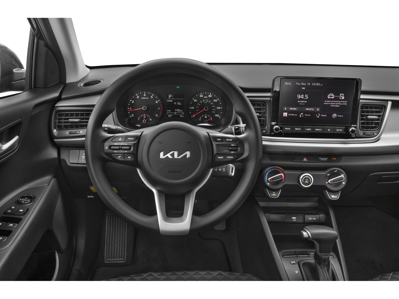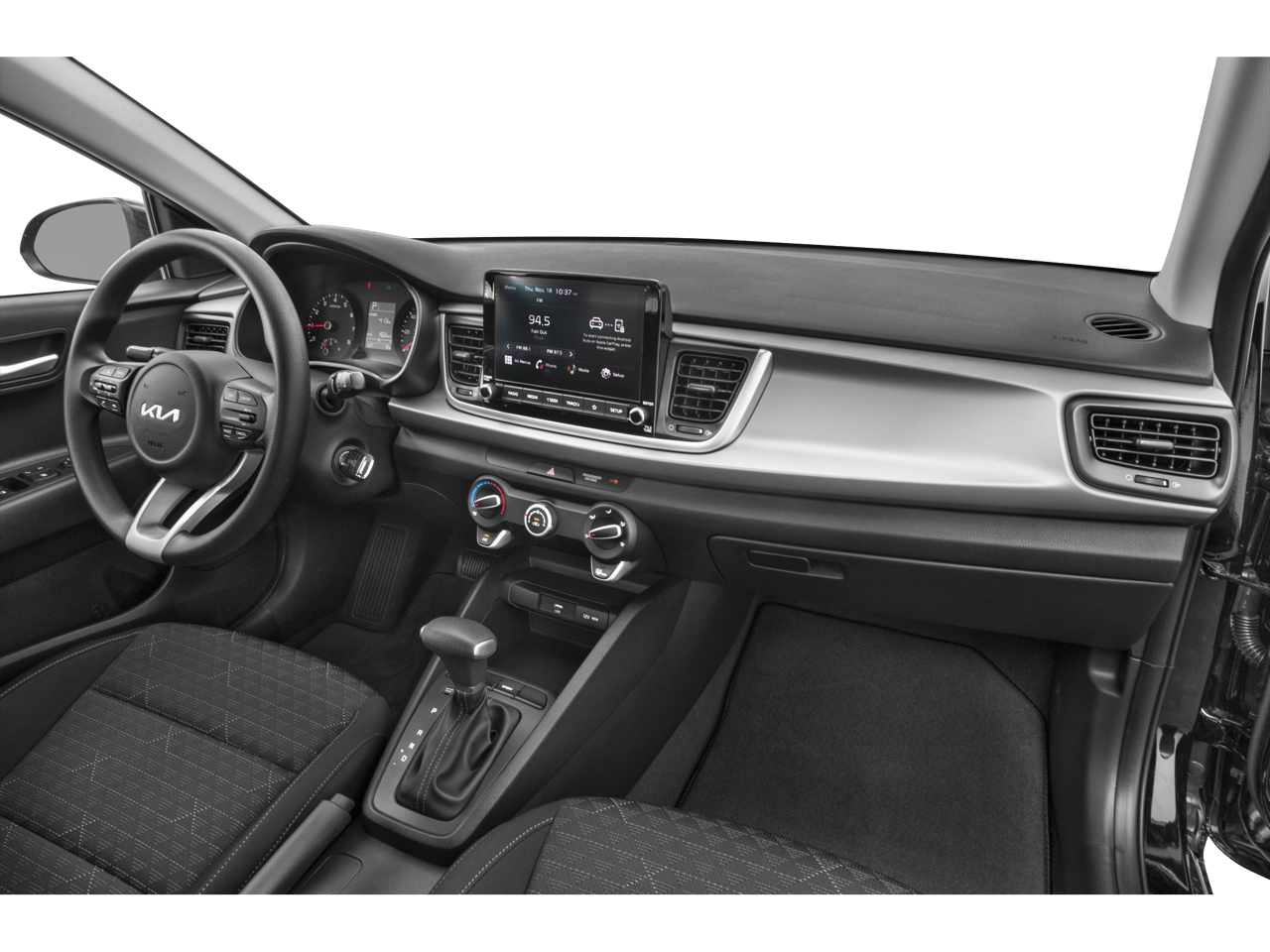 Recent Arrival! CARFAX One-Owner. 2022 Kia Rio S 1.6L 4-Cylinder CVT FWD 4D Sedan Steel Gray Black Cloth, 6 Speakers, ABS brakes, Air Conditioning, AM/FM radio, Brake assist, Bumpers: body-color, Driver door bin, Driver vanity mirror, Dual front impact airbags, Dual front side impact airbags, Electronic Stability Control, Front anti-roll bar, Front Bucket Seats, Front Center Armrest, Front reading lights, Front wheel independent suspension, Fully automatic headlights, Heated door mirrors, Illuminated entry, Low tire pressure warning, Occupant sensing airbag, Outside temperature display, Overhead airbag, Overhead console, Panic alarm, Passenger door bin, Passenger vanity mirror, Power door mirrors, Power steering, Power windows, Radio: AM/FM/MP3 Audio System, Rear window defroster, Remote keyless entry, Speed control, Speed-sensing steering, Split folding rear seat, Steering wheel mounted audio controls, Tachometer, Tilt steering wheel, Traction control, Trip computer, Variably intermittent wipers, Wheels: 15" x 5.5J Steel w/Full Covers, Woven Cloth Seat Trim, Black Cloth.