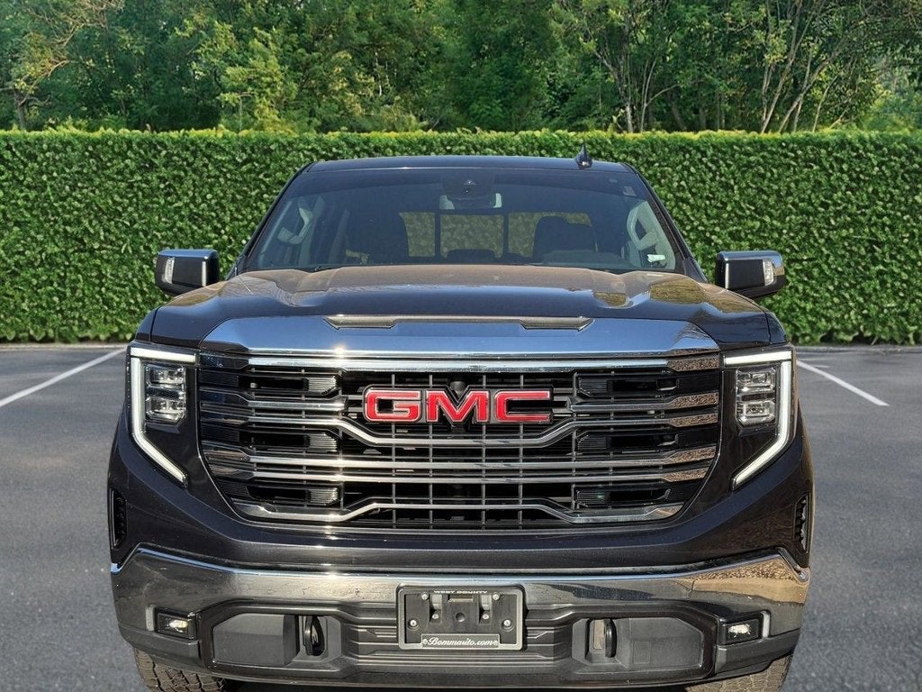 Recent Arrival! CARFAX One-Owner. Clean CARFAX. 2023 GMC Sierra 1500 SLT EcoTec3 5.3L V8 10-Speed Automatic 4WD 4D Crew Cab Titanium Rush Metallic 10-Speed Automatic, 4WD, Jet Black Leather, 10-Way Power Driver Seat Adjuster w/Lumbar, 10-Way Power Passenger Seat Adjuster w/Lumbar, 120-Volt Bed Mounted Power Outlet, 120-Volt Instrument Panel Power Outlet, 170 Amp Alternator, 2 Charge/Data USB Ports, 2 Charge/Data USB Ports Inside Center Console, 2 Type-C Charge-Only Rear USB Ports, 20 Polished Aluminum Wheels, 3.23 Rear Axle Ratio, 4-Wheel Disc Brakes, 6 Speakers, 6-Speaker Audio System Feature, ABS brakes, Adaptive Cruise Control, Air Conditioning, All-Weather Floor Liner (LPO), Alloy wheels, AM/FM radio, Apple CarPlay/Android Auto, Auto High-beam Headlights, Auto-dimming door mirrors, Auto-dimming Rear-View mirror, Auto-Locking Rear Differential, Automatic Emergency Braking, Automatic temperature control, Auxiliary External Transmission Oil Cooler, Brake assist, Buckle to Drive, Bumpers: chrome, Chrome Header & Chrome Grille Insert Bars, Chrome Wheel To Wheel Assist Steps, Color-Keyed Carpeting Floor Covering, Compass, Deep-Tinted Glass, Delay-off headlights, Driver door bin, Driver Memory, Driver vanity mirror, Dual Exhaust System, Dual front impact airbags, Dual front side impact airbags, Electric Rear-Window Defogger, Electrical Steering Column Lock, Electronic Precision Shift, Electronic Stability Control, Emergency communication system: OnStar and GMC connected services capable, Floor-Mounted Center Console, Following Distance Indicator, Forward Collision Alert, Front 40/20/40 Split-Bench Seat, Front anti-roll bar, Front Bucket Seats, Front Center Armrest w/Storage, Front dual zone A/C, Front fog lights, Front Frame-Mounted Black Recovery Hooks, Front License Plate Kit, Front Pedestrian Braking, Front Rainsensing Wipers, Front reading lights, Front wheel independent suspension, Fully automatic headlights, GMC Connected Access Capable, HD Rear Vision Camera, Heated 2nd Row Outboard Seats, Heated door mirrors, Heated Driver & Front Outboard Passenger Seating, Heated front seats, Heated steering wheel, Heavy-Duty Air Filter, High Capacity Suspension Package, Hill Descent Control, Hitch Guidance, Illuminated entry, IntelliBeam Automatic High Beam On/Off, Keyless Open & Start, Lane Keep Assist w/Lane Departure Warning, LED Cargo Area Lighting, Low tire pressure warning, Manual Tilt-Wheel & Telescoping Steering Column, Memory seat, Navigation System, Not Equipped w/Steering Column Lock, Occupant sensing airbag, Off-Road Suspension, OnStar & GMC Connected Services Capable, Outside temperature display, Overhead airbag, Overhead console, Panic alarm, Passenger door bin, Passenger vanity mirror, Perf Leather-Appointed Front Outboard Seat Trim, Perimeter Lighting, Power Door Locks, Power door mirrors, Power driver seat, Power Front Passenger Windows w/Express Up/Down, Power Front Windows w/Driver Express Up/Down, Power passenger seat, Power Rake & Telescoping Steering Column, Power Rear Windows w/Express Down, Power Sliding Rear Window w/Rear Defogger, Power steering, Power Sunroof, Power windows, Preferred Equipment Group 4SA, Premium audio system: GMC Infotainment System, Premium Bose 7-Speaker Sound System, Push Button Start, Radio data system, Radio: Premium GMC Infotainment Audio System, Rain sensing wipers, Rear reading lights, Rear seat center armrest, Rear step bumper, Rear Wheelhouse Liners, Rear window defroster, Remote keyless entry, Remote Vehicle Starter System, Security system, SiriusXM w/360L, SLT Convenience Package, SLT Preferred Package, SLT Premium Package, Speed control, Speed-sensing steering, Split folding rear seat, Spray-On Pickup Bed Liner w/GMC Logo, Standard Suspension Package, Steering Wheel Audio Controls, Steering wheel mounted audio controls, Tachometer, Telescoping steering wheel, Theft Deterrent System (Unauthorized Entry), Tilt steering wheel, Tract