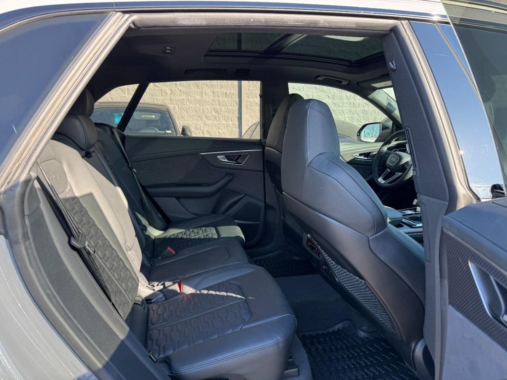 Recent Arrival! CARFAX One-Owner. 2024 Audi RS Q8 4.0T quattro 4.0L V8 Turbocharged DOHC 32V LEV3-ULEV125 590hp 8-Speed Automatic with Tiptronic quattro 4D Sport Utility Gray 17 Speakers, 4-Wheel Disc Brakes, ABS brakes, Adaptive suspension, Air Conditioning, Alloy wheels, AM/FM radio: SiriusXM w/ 360L, Auto High-beam Headlights, Auto-dimming door mirrors, Auto-dimming Rear-View mirror, Auto-leveling suspension, Automatic temperature control, Bang & Olufsen Premium Sound System w/3D Sound, Brake assist, Bumpers: body-color, Compass, Delay-off headlights, Driver door bin, Driver vanity mirror, Dual front impact airbags, Dual front side impact airbags, Electronic Stability Control, Emergency communication system: Audi connect CARE, Exterior Parking Camera Rear, Four wheel independent suspension, Front anti-roll bar, Front Bucket Seats, Front Center Armrest, Front dual zone A/C, Front fog lights, Front reading lights, Fully automatic headlights, Garage door transmitter: HomeLink, Headlight cleaning, Heated & Ventilated Sports Seats Plus, Heated door mirrors, Heated front seats, Heated steering wheel, Illuminated entry, Leather Shift Knob, Leather steering wheel, Low tire pressure warning, Memory seat, Navigation system: Audi MMI Navigation plus with Touch Response, Occupant sensing airbag, Outside temperature display, Overhead airbag, Overhead console, Panic alarm, Passenger door bin, Passenger vanity mirror, Perforated Valcona Leather Seating Surfaces, Power door mirrors, Power driver seat, Power Liftgate, Power moonroof: Panoramic, Power passenger seat, Power steering, Power windows, Radio data system, Radio: MMI Navigation Plus, Rain sensing wipers, Rear air conditioning, Rear anti-roll bar, Rear dual zone A/C, Rear fog lights, Rear reading lights, Rear seat center armrest, Rear side impact airbag, Rear Window Blind, Rear window defroster, Rear window wiper, Remote keyless entry, Security system, Speed control, Speed-sensing steering, Split folding rear seat, Spoiler, Steering wheel memory, Steering wheel mounted audio controls, Tachometer, TBD Axle Ratio, Telescoping steering wheel, Tilt steering wheel, Traction control, Trip computer, Turn signal indicator mirrors, Variably intermittent wipers, Ventilated front seats, Wheels: 22" 10-V-Spoke Star Design.