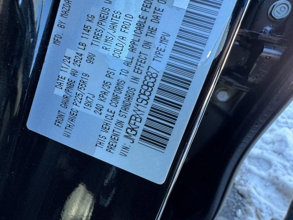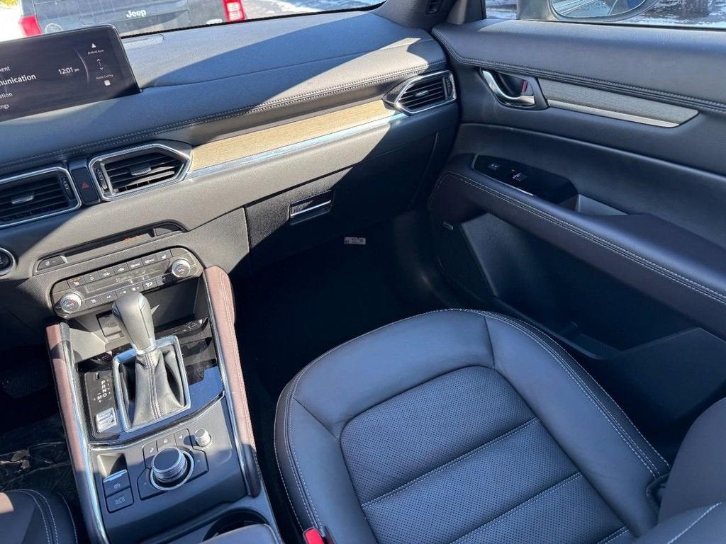 Certified. Clean CARFAX. 2025 Mazda CX-5 2.5 Turbo Signature 2.5L I4 6-Speed Automatic AWD 4D Sport Utility Jet Black Mica Mazda Certified Pre-Owned Details:* Warranty Deductible: $0* Includes Autocheck Vehicle History Report with 3 Year Buyback Protection. 3 month SiriusXM trial subscription.* Powertrain Limited Warranty: 84 Month/100,000 Mile (whichever comes first) from original in-service date* Roadside Assistance* Vehicle History* 160 Point Inspection* Limited Warranty: 12 Month/12,000 Mile (whichever comes first) after new car warranty expires or from certified purchase date* Transferable WarrantyMazda Certified Pre-Owned Certified, 10 Speakers, 4-Wheel Disc Brakes, ABS brakes, Air Conditioning, Alloy wheels, AM/FM radio: SiriusXM, AppLink/Apple CarPlay and Android Auto, Auto High-beam Headlights, Auto-dimming Rear-View mirror, Automatic temperature control, Brake assist, Bumpers: body-color, Delay-off headlights, Driver door bin, Driver vanity mirror, Dual front impact airbags, Dual front side impact airbags, E911 Automatic Emergency Notification, Electronic Stability Control, Emergency communication system: MAZDA CONNECT, Four wheel independent suspension, Front anti-roll bar, Front Bucket Seats, Front Center Armrest w/Storage, Front dual zone A/C, Front reading lights, Fully automatic headlights, Garage door transmitter: HomeLink, Genuine wood dashboard insert, Genuine wood door panel insert, Heads-Up Display, Heated door mirrors, Heated front seats, Heated rear seats, Heated steering wheel, Heated/Ventilated Front Bucket Seats, Illuminated entry, Infotainment System Voice Command, Leather Shift Knob, Leather steering wheel, Low tire pressure warning, Mazda Navigation System, Memory seat, Multifunction Commander Control, Nappa Leather Seat Trim, Navigation system: MAZDA CONNECT, Occupant sensing airbag, Outside temperature display, Overhead airbag, Overhead console, Pandora, Panic alarm, Passenger door bin, Passenger vanity mirror, Power door mirrors, Power driver seat, Power Liftgate, Power moonroof, Power passenger seat, Power steering, Power windows, Radio Broadcast Data System Program Information, Radio data system, Radio: AM/FM/HD Audio System, Rain sensing wipers, Rear anti-roll bar, Rear reading lights, Rear seat center armrest, Rear window defroster, Rear window wiper, Remote keyless entry, SMS Text Msg Audio Delivery & Reply, Speed control, Speed-sensing steering, Split folding rear seat, Spoiler, Steering wheel mounted audio controls, Tachometer, Telescoping steering wheel, Tilt steering wheel, Traction control, Trip computer, Turn signal indicator mirrors, Variably intermittent wipers, Ventilated front seats, Wheels: 19 x 7J Aluminum Alloy.