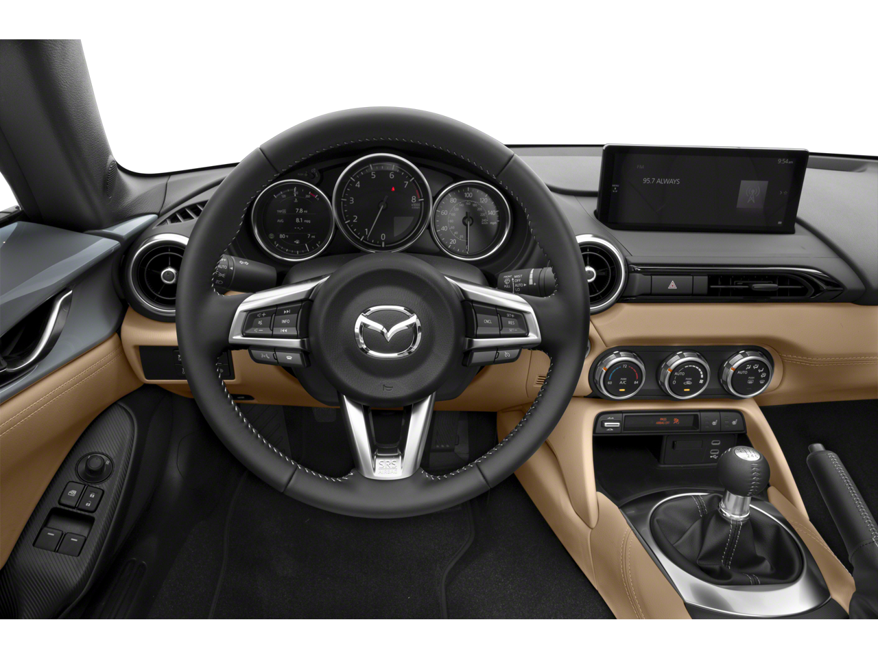 Recent Arrival! CARFAX One-Owner. 2025 Mazda MX-5 Miata RF Grand Touring 2.0L 4-Cylinder DOHC 16V 6-Speed Manual RWD 2D Convertible Snowflake White Pearl Mica 17" black metallic finish alloy wheels, 4-Wheel Disc Brakes, 9 Speakers, ABS brakes, Air Conditioning, Alloy wheels, AM/FM radio: SiriusXM, AppLink/Apple CarPlay and Android Auto, Auto High-beam Headlights, Auto-dimming door mirrors, Auto-dimming Rear-View mirror, Automatic temperature control, bose audio system with audiopilot, Brake assist, Bumpers: body-color, Convertible HardTop, Convertible roof lining, Convertible roof wind blocker, Delay-off headlights, Driver vanity mirror, Dual front impact airbags, Dual front side impact airbags, Electronic Stability Control, Emergency communication system: MAZDA CONNECT, Exterior Parking Camera Rear, Four wheel independent suspension, Front anti-roll bar, Front Bucket Seats, Front Center Armrest, Fully automatic headlights, Garage door transmitter: HomeLink, Glass rear window, Heated door mirrors, heated front bucket seats, Heated front seats, Illuminated entry, Leather Shift Knob, leather-trimmed upholstery, Low tire pressure warning, MAZDA CONNECT Infotainment system, Nappa leather-trimmed upholstery, Navigation System, Occupant sensing airbag, Outside temperature display, Panic alarm, Passenger vanity mirror, Power convertible roof, Power door mirrors, Power steering, Power windows, Radio data system, Rain sensing wipers, Rear anti-roll bar, Rear window defroster, Remote keyless entry, snowflake white pearl and tan Nappa leather charge, Speed control, Speed-sensing steering, Sport steering wheel, Steering wheel mounted audio controls, Tachometer, Telescoping steering wheel, Tilt steering wheel, Traction control, Trip computer, Variably intermittent wipers.