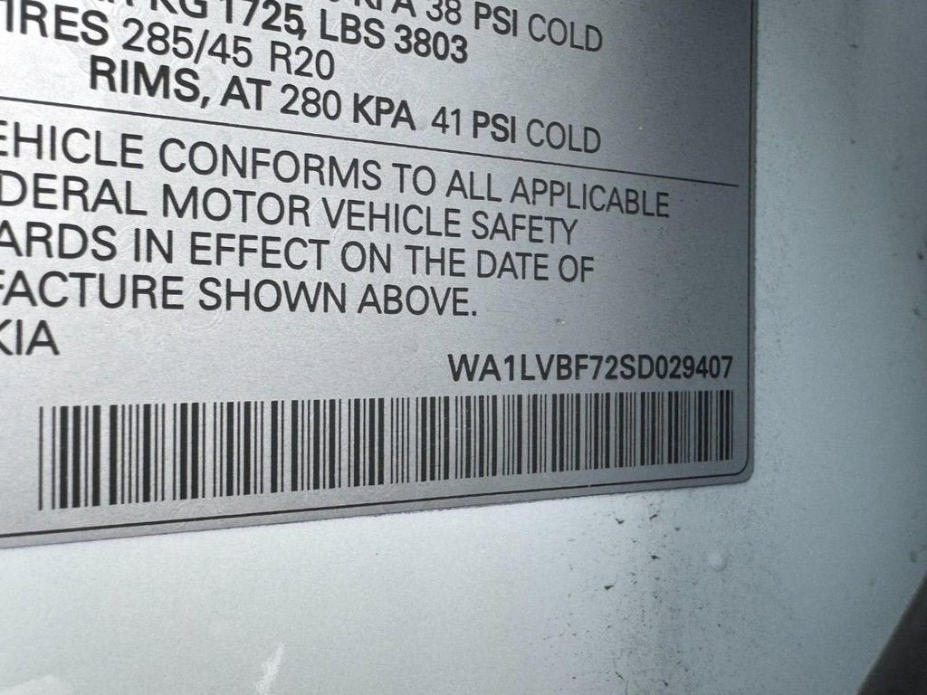 Audi Certified pre-owned Certified, 10 Speakers, 3rd row seats: bench, 4-Wheel Disc Brakes, ABS brakes, Air Conditioning, Alloy wheels, AM/FM radio: SiriusXM w/360L, Audi Beam Rings, Audi Guard All-Weather Mats, Auto High-beam Headlights, Auto-dimming door mirrors, Auto-dimming Rear-View mirror, Automatic temperature control, Bang & Olufsen Premium Sound System with 3D Sound, Brake assist, Bumpers: body-color, Comfort Adaptive Air Suspension, Compass, Control Buttons in Gloss Black with Haptic Feedback, Convenience Package, Delay-off headlights, Driver door bin, Driver vanity mirror, Dual front impact airbags, Dual front side impact airbags, Dual-Pane Acoustic Glass For Side Windows, Electronic Stability Control, Emergency communication system: Audi connect CARE, Executive Plus Package, Exterior Parking Camera Rear, Four wheel independent suspension, Four-Zone Automatic Climate Control, Front anti-roll bar, Front Bucket Seats, Front Center Armrest, Front dual zone A/C, Front fog lights, Front reading lights, Front Seats with Ventilation, Fully automatic headlights, Garage door transmitter: HomeLink, Genuine wood door panel insert, Heated door mirrors, Heated Front Bucket Seats, Heated front seats, Heated Rear Seats, Heated Steering Wheel, Illuminated Door Sills, Illuminated entry, Leather Seating Surfaces, Leather Shift Knob, Leather steering wheel, LED Interior Lighting Package Plus, Low tire pressure warning, Memory seat, Navigation system: Audi MMI Navigation plus with Touch Response, Occupant sensing airbag, Outside temperature display, Overhead airbag, Overhead console, Panic alarm, Passenger door bin, Passenger vanity mirror, Power door mirrors, Power driver seat, Power Liftgate, Power moonroof: Panoramic, Power passenger seat, Power Soft-Closing Doors, Power steering, Power windows, Premium Plus Package, Privacy Trunk Cover, Radio data system, Radio: Audi Sound System, Rain sensing wipers, Rear air conditioning, Rear anti-roll bar, Rear Door/Side Windows and Tailgate Sunshades, Rear fog lights, Rear reading lights, Rear seat center armrest, Rear side impact airbag, Rear window defroster, Rear window wiper, Reclining 3rd row seat, Remote keyless entry, Security system, Speed control, Speed-sensing steering, Split folding rear seat, Spoiler, Steering wheel memory, Steering wheel mounted audio controls, Tachometer, Telescoping steering wheel, Tilt steering wheel, Top View Camera System, Traction control, Traffic Sign Recognition, Trip computer, Turn signal indicator mirrors, Variably intermittent wipers, Wheels: 19 5-Arm-Star Design, Wheels: 20 5-Double-Spoke, Wireless Phone Charging Pad, Wireless Phone Charging Pad Delete.