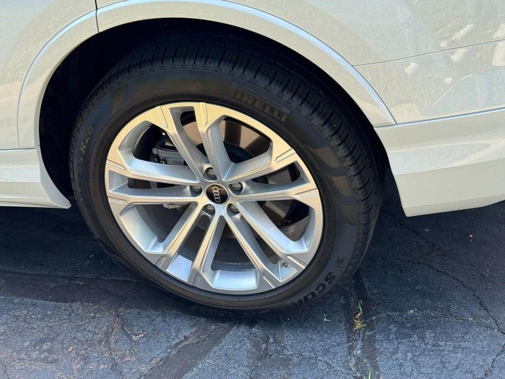 Recent Arrival! 2025 Audi Q7 55 Premium quattro 3.0L TFSI 8-Speed Automatic with Tiptronic quattro 4D Sport Utility Glacier White 10 Speakers, 3rd row seats: bench, 4-Wheel Disc Brakes, ABS brakes, Air Conditioning, Alloy wheels, AM/FM radio: SiriusXM w/360L, Auto High-beam Headlights, Auto-dimming door mirrors, Auto-dimming Rear-View mirror, Automatic temperature control, Brake assist, Bumpers: body-color, Compass, Delay-off headlights, Driver door bin, Driver vanity mirror, Dual front impact airbags, Dual front side impact airbags, Electronic Stability Control, Emergency communication system: Audi connect CARE, Exterior Parking Camera Rear, Four wheel independent suspension, Front anti-roll bar, Front Bucket Seats, Front Center Armrest, Front dual zone A/C, Front fog lights, Front reading lights, Fully automatic headlights, Garage door transmitter: HomeLink, Genuine wood door panel insert, Heated door mirrors, Heated Front Bucket Seats, Heated front seats, Illuminated entry, Leather Seating Surfaces, Leather Shift Knob, Leather steering wheel, Low tire pressure warning, Memory seat, Navigation system: Audi MMI Navigation plus with Touch Response, Occupant sensing airbag, Outside temperature display, Overhead airbag, Overhead console, Panic alarm, Passenger door bin, Passenger vanity mirror, Power door mirrors, Power driver seat, Power Liftgate, Power moonroof: Panoramic, Power passenger seat, Power steering, Power windows, Radio data system, Radio: Audi Sound System, Rain sensing wipers, Rear air conditioning, Rear anti-roll bar, Rear fog lights, Rear reading lights, Rear seat center armrest, Rear side impact airbag, Rear window defroster, Rear window wiper, Reclining 3rd row seat, Remote keyless entry, Security system, Speed control, Speed-sensing steering, Split folding rear seat, Spoiler, Steering wheel memory, Steering wheel mounted audio controls, Tachometer, Telescoping steering wheel, Tilt steering wheel, Traction control, Trip computer, Turn signal indicator mirrors, Variably intermittent wipers, Wheels: 19 5-Arm-Star Design.