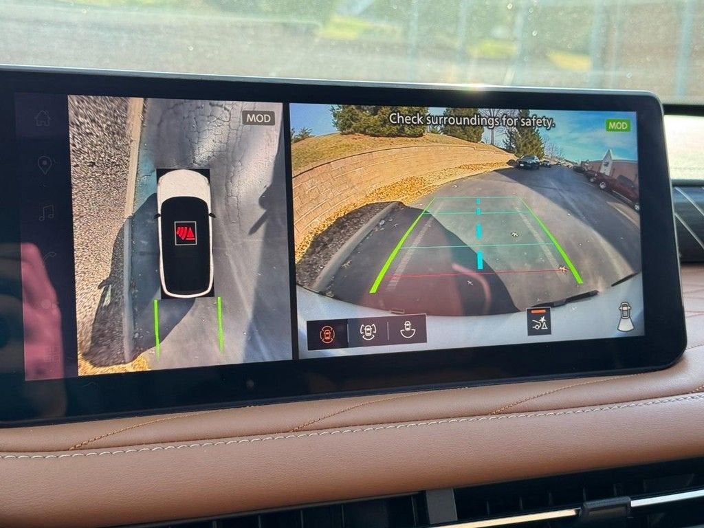 INFINITI Certified Pre-Owned Certified, 2-Tone Super Premium Paint, 20 Speakers, 3rd row seats: bench, 4-Wheel Disc Brakes, ABS brakes, Air Conditioning, Alloy wheels, AM/FM radio: SiriusXM with 360L, Anti-whiplash front head restraints, Apple CarPlay/Android Auto, Auto High-beam Headlights, Auto tilt-away steering wheel, Auto-dimming door mirrors, Auto-dimming Rear-View mirror, Automatic temperature control, Black Rear Bumper Film, Black Roof Rail Crossbars, Bose Performance Series 17-Speaker Sound System, Brake assist, Bumpers: body-color, Cargo Blocks, Cargo Mat, Cargo Net, Climate Controlled Massaging Front Bucket Seats, Dark Cargo Package, Delay-off headlights, Driver door bin, Driver vanity mirror, Dual front impact airbags, Dual front side impact airbags, Electronic Stability Control, Emergency communication system: INFINITI InTouch, Four wheel independent suspension, Front anti-roll bar, Front Bucket Seats, Front Center Armrest, Front dual zone A/C, Front reading lights, Fully automatic headlights, Garage door transmitter: HomeLink, Genuine wood door panel insert, Heads-Up Display, Heated door mirrors, Heated front seats, Heated rear seats, Heated steering wheel, Illuminated entry, Knee airbag, Leather Shift Knob, Leather steering wheel, Low tire pressure warning, Medic Kit, Memory seat, Navigation system: Google Built-in, Occupant sensing airbag, Outside temperature display, Overhead airbag, Overhead console, Panic alarm, Passenger door bin, Passenger vanity mirror, Power door mirrors, Power driver seat, Power Liftgate, Power moonroof: Panoramic, Power passenger seat, Power steering, Power windows, Radio data system, Radio: Klipsch Premiere Audio System, Rain sensing wipers, Rear air conditioning, Rear anti-roll bar, Rear reading lights, Rear side impact airbag, Rear window defroster, Rear window wiper, Reclining 3rd row seat, Remote keyless entry, Security system, Semi Aniline Leather-Appointed Seating Surfaces, Speed control, Speed-sensing steering, Speed-Sensitive Wipers, Split folding rear seat, Spoiler, Steering wheel memory, Steering wheel mounted audio controls, Tachometer, Telescoping steering wheel, Tilt steering wheel, Traction control, Trip computer, Turn signal indicator mirrors, Variably intermittent wipers, Ventilated front seats, Wheels: 20 x 8J Luxury Machined Aluminum Alloy.